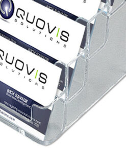 Horisontal akryl visitkortholder fremstillet i transparent eller sort sprøjtestøbt polystyrol.